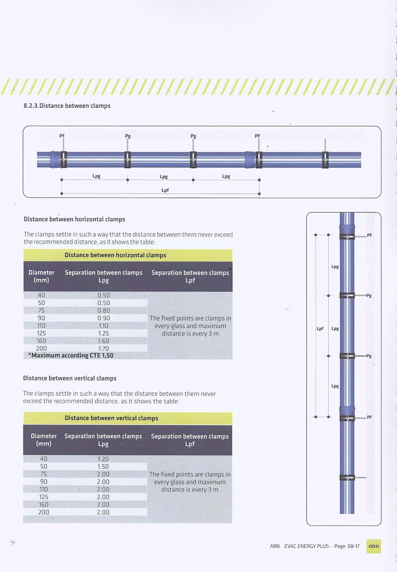 1- PLASTİK ATIK SU BORULARININ MONTAJI : Boru taşıyıcı kelepçeler aşağıdaki şekilde BORU ÇAPLARINDA belirtildiği gibi YATAY HATLARDA ve DÜŞEY HATLARDA mufun hemen arkasından başlanılmalı ve belirtilen aralıklarda sabitlenmelidir.